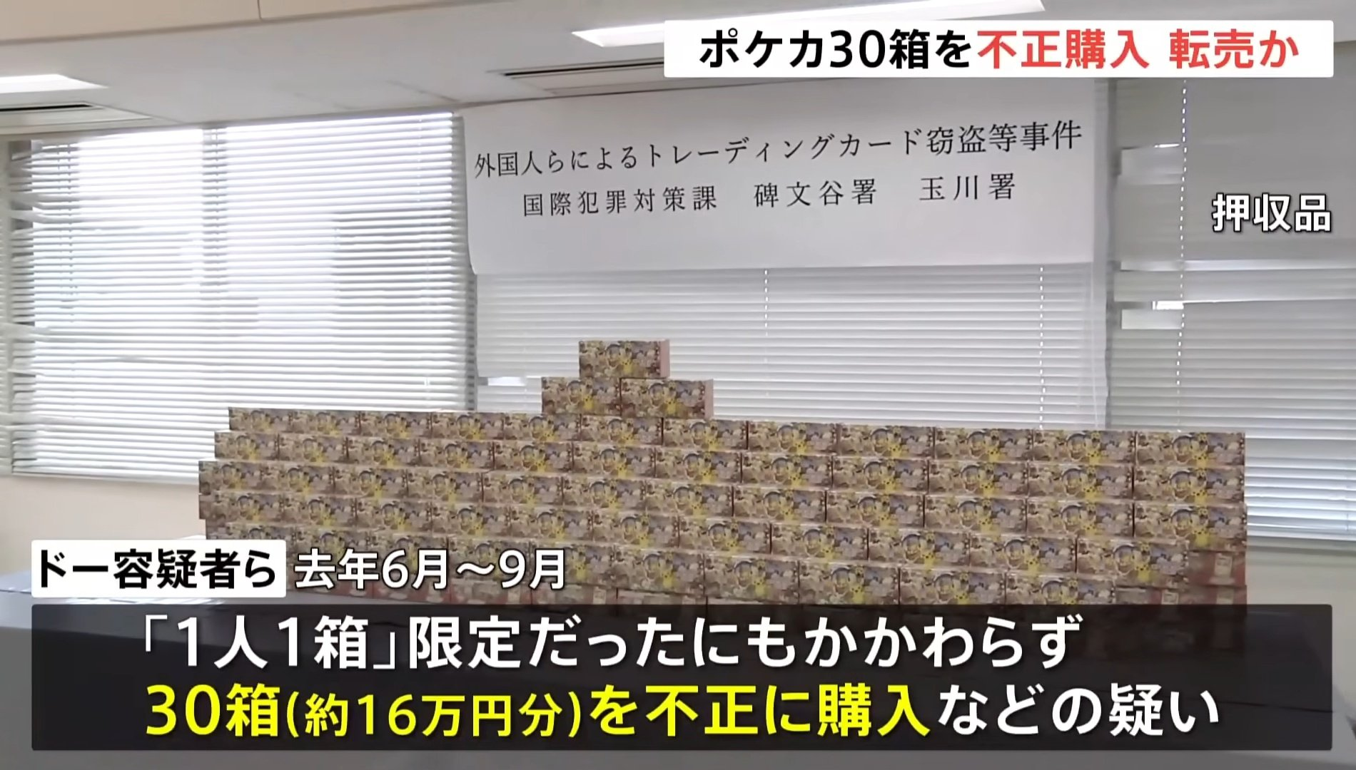 警方於 2 月 4 日搜索相關處所時,查扣 15,440 張寶可夢卡牌。調查單位研判,兩人疑似以高於原價轉售,累計不法所得可能超過 424 萬日圓,目前仍在釐清整體金流與實際銷售規模。